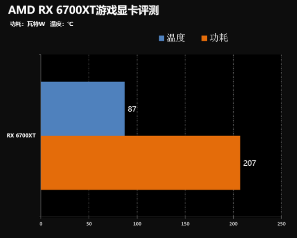 在温度方面,显卡在满载的情况,显卡的温度为87℃,在功耗方面,这款显卡的实际功耗为207瓦特,全平台的满载功耗为401瓦特,建议用户选择800W左右的电源,这样在游戏的时候能够让电源稳定在最佳转换效率上进行工作。
