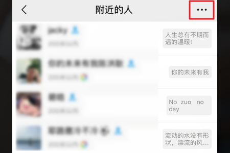 3、如果其他的人看不到自己,可以点击右上角【···】按钮并点击查看【附近打招呼的人】;