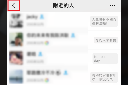 3、点击进去后即可看到很多附近的人,然后点击左上方的箭头。