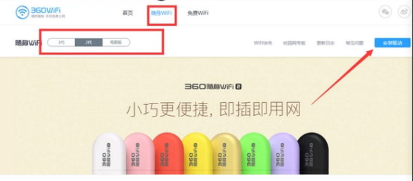 3、如果插入设备后电脑没有开始自动安装驱动程序,也可自己前往网站首页点击随身wifi,选择好你购买的产品类型,然后点击“安装驱动”即可;