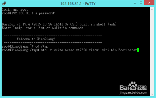 同时我们把breed-mt7620-xiaomi-mini.bin传到/tmp目录,准备刷入。