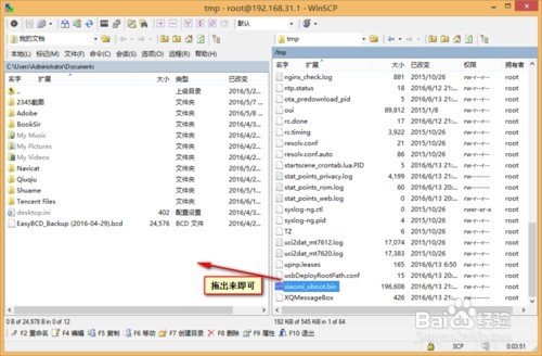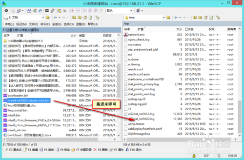 同样用WinSCP把xiaomi_uboot.bin文件拷贝出来作为备份,因为小编之前说了,tmp目录是个临时存放处,当系统重启时临时文件就会丢失。