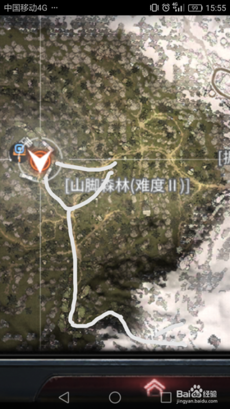 将路线图放大,你看到了那条细细的小路了吗?图中白色线路图。