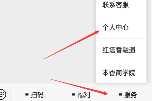 4、进入到该微信公众号以后点击右下角的服务,选择个人中心。