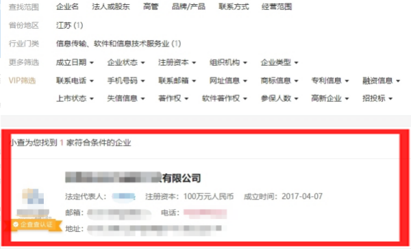 可以在“企查查”官网输入“电话号码”查询该号码所属的“公司”。