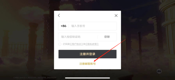 米哈游目前暂时关闭了邮箱注册入口,只能使用手机号码进行注册,但是可以在用手机注册账号后进行邮箱绑定,具体操作步骤如下: