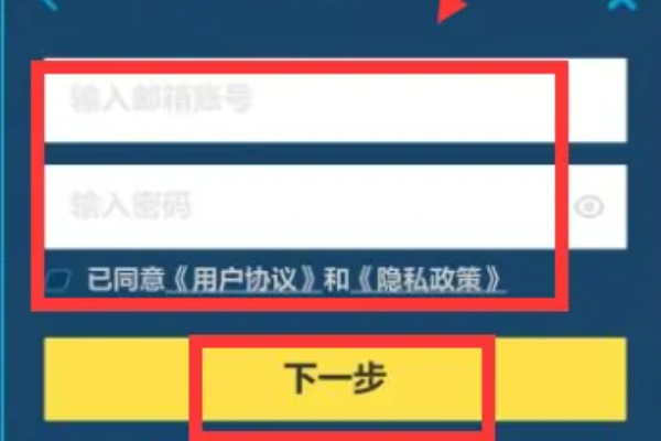 4、输入邮箱账号和密码,勾选协议点击“下一步”完成注册即可。