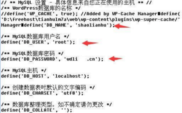 9、在源码里找到wp-config.php这个文件,用记事本打开,配置一下数据库,然后再上传覆盖就成功了