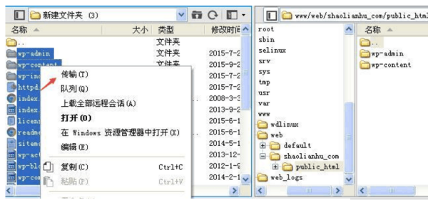 3、用XFTP登录服务器,把打包的网站文件先解压,然后上传