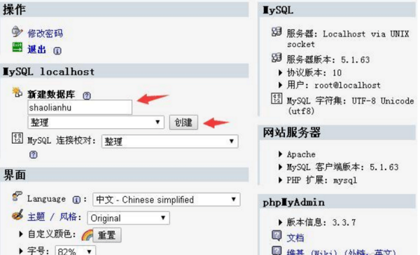 5、新建一个数据库,输入数据库名,最好用字母,然后点击创建