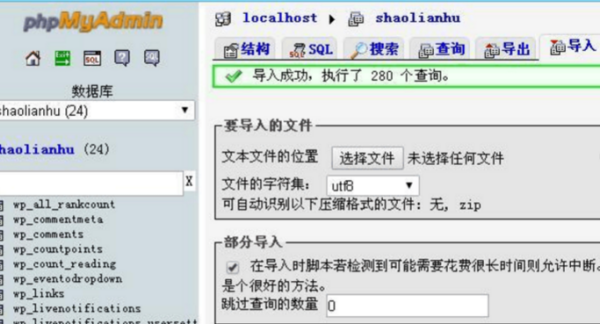 8、这时候大家就不要直接上传1.sql了把1.sql弄成zip格式的压缩包上传,这次就会成功了