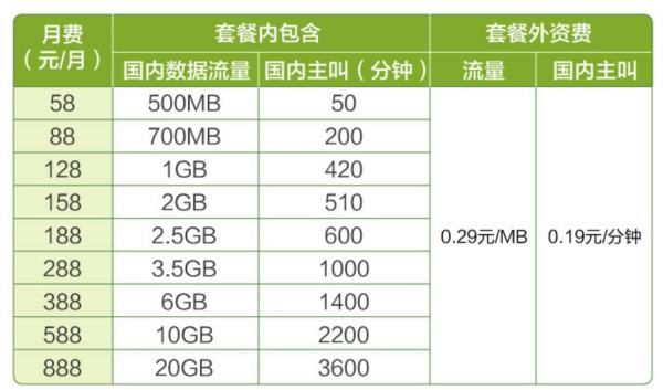 个人版分为5档,售价分别为128/198/298/398/598元,流量分别有30/60/100/150/300GB,语音最低200分钟最高30000分钟,流量超过后按照1GB/5元的价格计算,满15元后,按照1GB/3元的价格计算。
