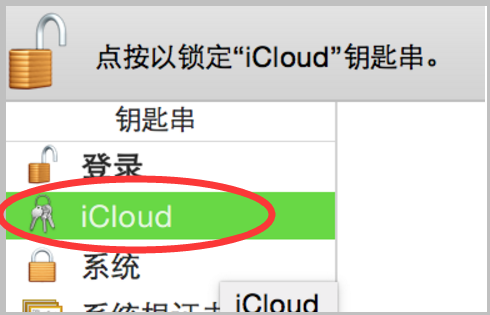 3、进入钥匙串的设置界面后,点击iCloud将其钥匙串登录锁定关闭。