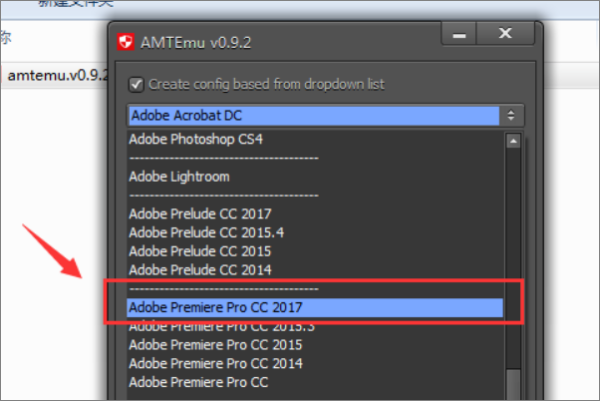 3、在弹出的下拉列表中选择AdobePremiereProCC2017。