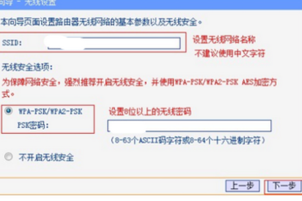 5、填完宽带参数后,到无线设置界面,输入一个无线名称和密码。