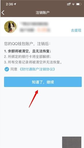 5、点击后,选择上方的输入支付密码注销账户,将QQ钱包账户注销。