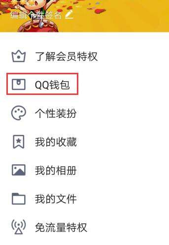 1、打开手机QQ,点击头像后选择我的QQ钱包进入。如图所示: