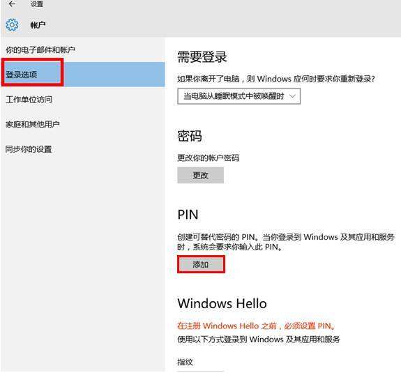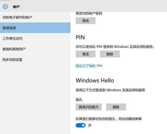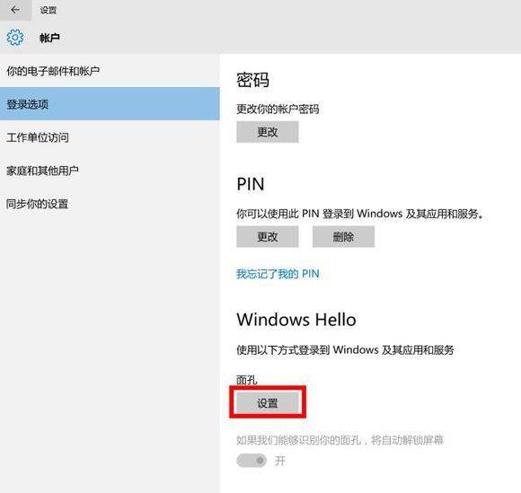 在Windows 10内点击开始-设置-账户-登录选项,进入Windows Hello。