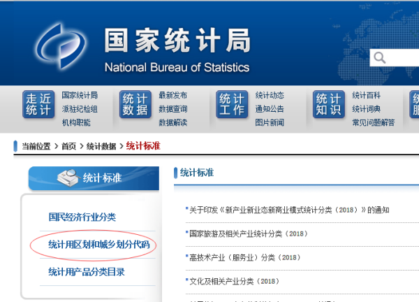5、点击年份进入以后,下方就会显示我国各省的区划代码和城乡划分代码。