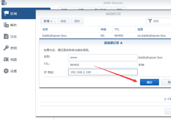 8、名称写www,IP地址写服务器的地址,就完成了。
