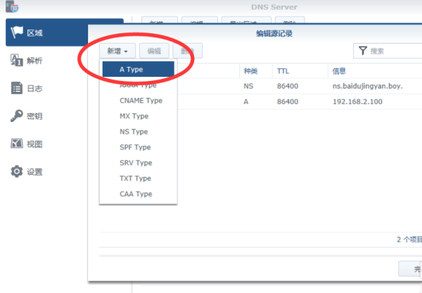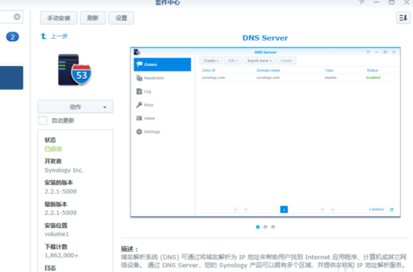2、点击主页面左上方,可以看见DNS Server,点击,打开DNS Server套件。