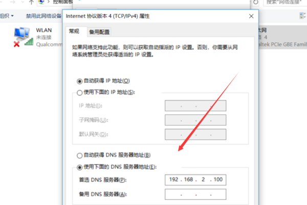 5、由于暂时未设置路由器的DNS,这里将笔记本的DNS设置为DNS服务器的地址。