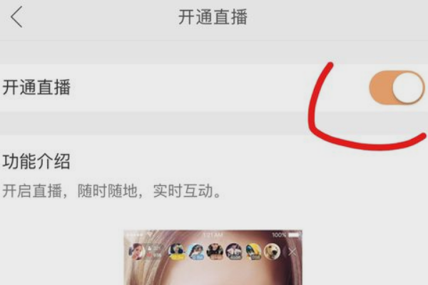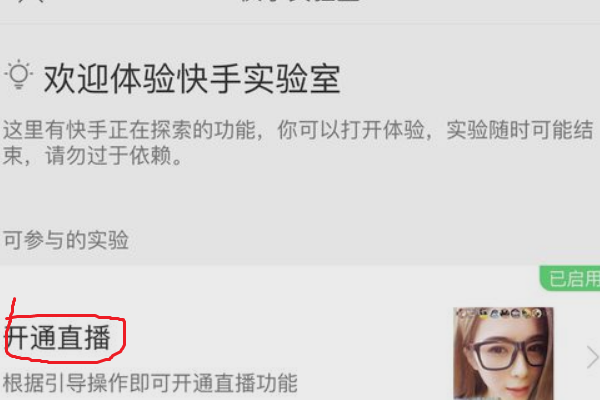 6、最后,如图红圈所示,把开通直播关死就行了,这样就取消了快手直播。