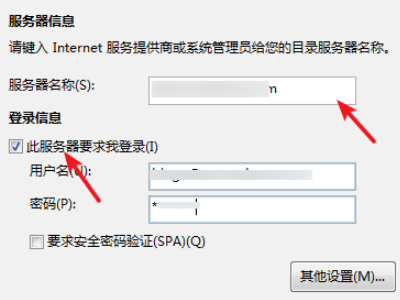 4、服务器名称中填写服务器地址,可以找服务商提供,勾选“此服务器要求我登陆”输入自己的邮箱信息。