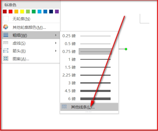 3、在接着弹出的下拉菜单中点击粗细下的其他线条按钮。