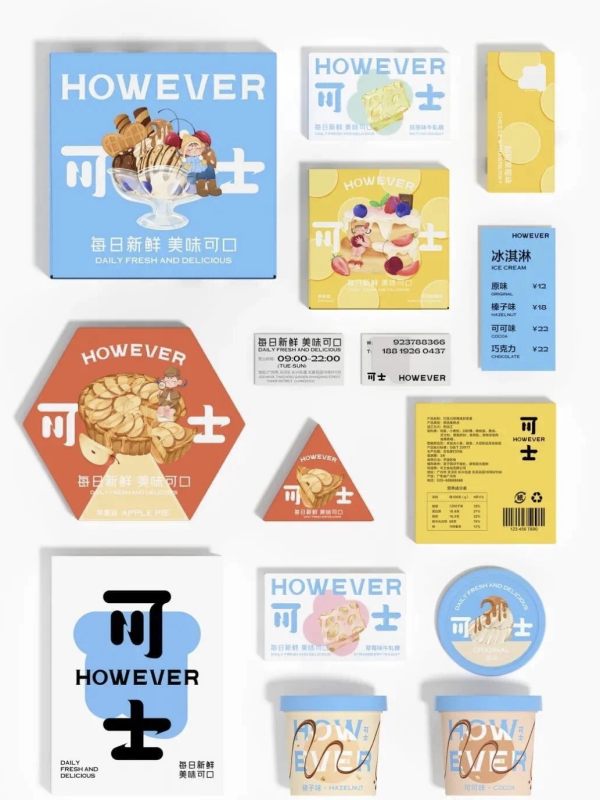 郑州妙鼠平面设计这是一家植根于郑州本地的设计公司。以企业形象策划和品牌视觉设计为主。为客户提供产品的视觉设计和包装设计等服务。这一家公司设计过一家甜品店的包装。整个设计给人的第一感觉是温馨和舒适,非常符合甜品给人的感觉。利用插画的表现形式。凸显甜品中的一抹甜,增添趣味与亲和力。整一家公司都给人一种活力满满的感觉。