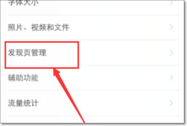 4、然后来到【通用】页面,点击【发现页管理】,如下图所示。