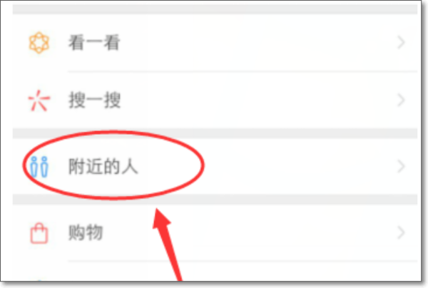 6、切换到【发现】选项卡,然后再点击【附近的人】,如下图所示。