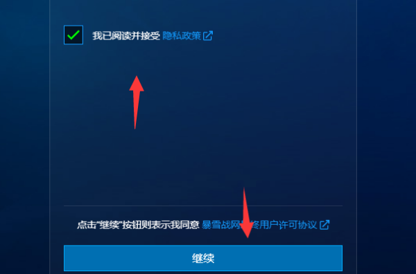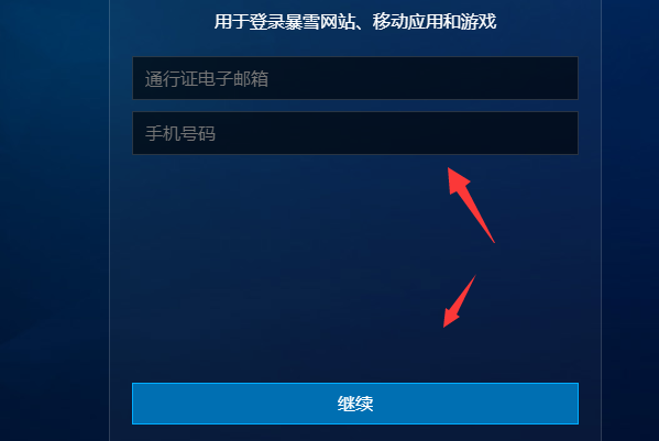 3、输入战网通行证账号(即注册时所用的邮箱地址),真实姓名,输入验证码并点击“继续”。