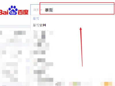 2、接下来需要进入浏览器的主页,在输入框输入“暴雪”二字,然后点击“百度一下”如图所示。