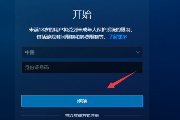 3、进入到暴雪账户注册界面,输入证件号码以后点击继续。