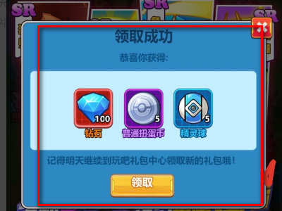 4、最后一步,只有以下三个任务才能生成精灵球和狩猎球,单击【领取】即可。