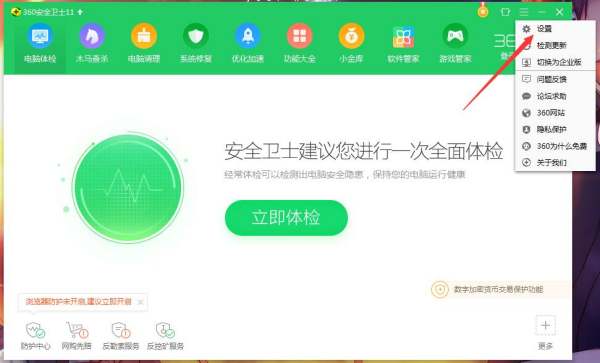 1、打开360安全卫士主菜单,进入设置中心
