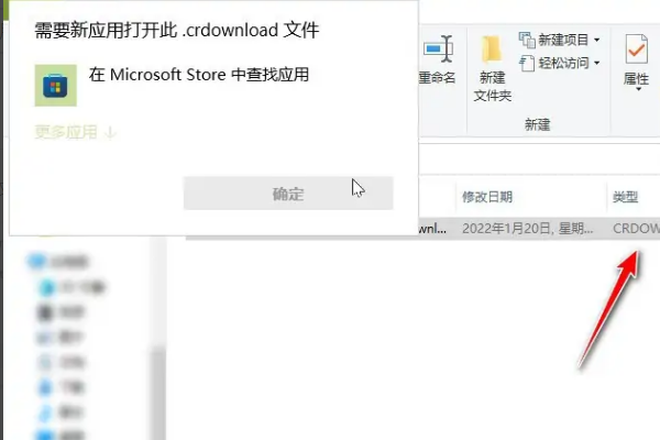 1、忽略弹窗,查看文件的类型为crdownload,表示为未下载完全的文件,如下图所示。