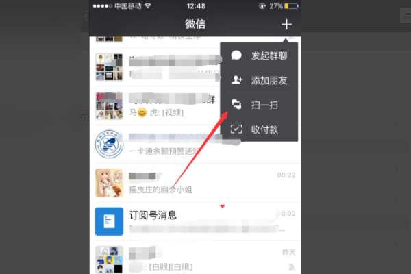 5、把截图保存到相册,我们现在可以来测试一下该二维码是否能扫描,我们点击微信主页右上方的扫一扫,点击相册图片扫描即可。