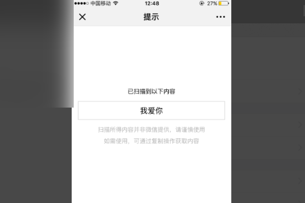6、把截图扫成功后就会出现想要的文字了,这时候一个完整的二维码就制作成功了。