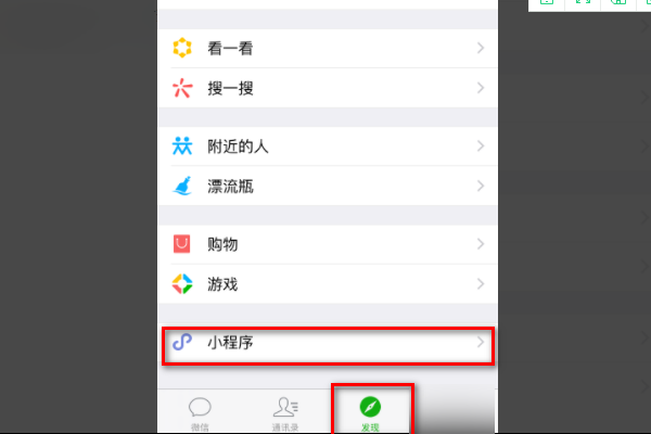 1、首先打开微信,点击下方“发现”中的“小程序”并点击进入。
