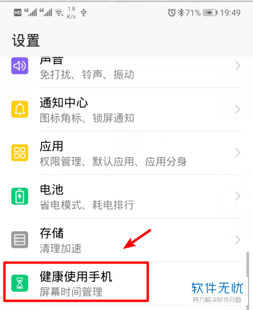 2. 第二步,进入设置页面后,点击下方的健康使用手机功能。