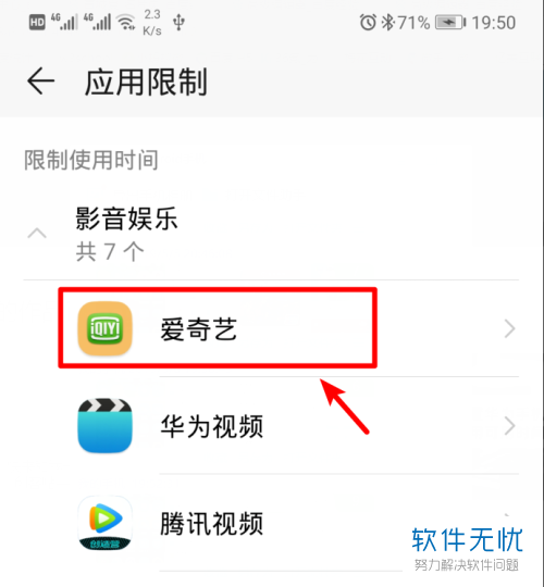 6. 第六步,在应用限制页面中,选择要限制时间的应用并打开。