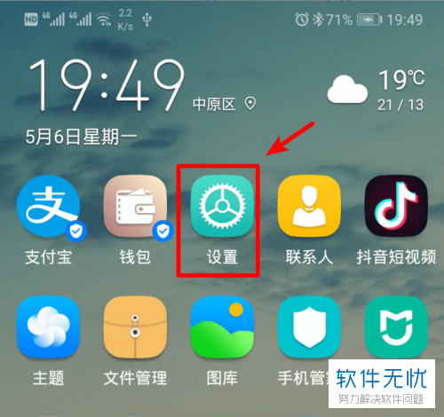 1. 第一步,打开手机并在桌面找到设置图标,点击打开。