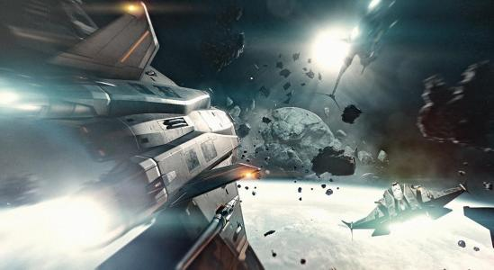 从一公里长的运输机到27米的战斗机,甚或你那1.8米高的驾驶员,所有东西都会得到相同水准的渲染。放大一只运输船的嵌板,你会发现它的纹理细节跟27米的战斗机毫无二致。所有这些都不需要通过载入也不会损失任何视觉精度。真的能感觉到太空战斗和船的规模。