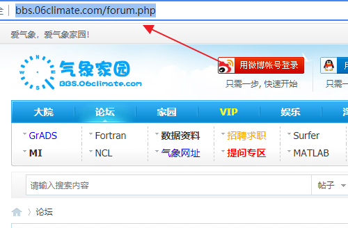4、然后在顶部导航栏中就能看到论坛地址了,如下图所示: