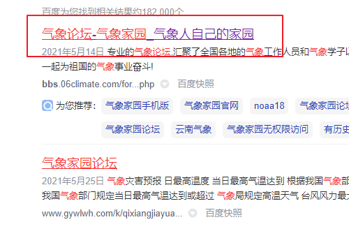 3、然后在搜索结果中找到“气象家园”官网,点击进入,如下图所示: