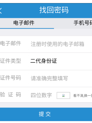 2、输入注册时绑定的邮箱和身份证,输入验证码,点击提交。