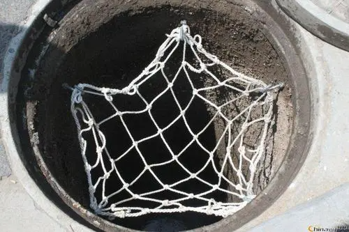 一、安装范围 城区道路(含人行道、广场)客井加装防坠网,超过1.2米深则应安装双层防坠网。道路范围以外雨污水客井宜安装单层防坠网,其余有危险或行人经过的窖井应安装单层防坠网。 二、安装高度和位置: 安装于井室顶口下0.2-0.5米范围。单层防坠网选用弹性网,固定位置一般在上顶盖以下20-30cm之间,双层防坠网,弹性和刚 性结合,双网之间相距15-25cm。 三、安装材质要求: 1、综合要求:单层防坠网为弹性材质,双层防坠网为弹性和刚性材质,钢性防坠网安装在上,弹性防坠网安装在下。防坠网片须有外圆固定圈,与网同种材料制作。 2、弹性防坠网:弹性防坠网采用耐腐蚀、高强度的聚乙烯材料制作,网绳直径井深多少才装防坠网
