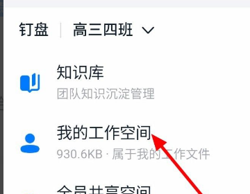 2、在钉盘与文档页面,向下滑动,点击我的工作空间。